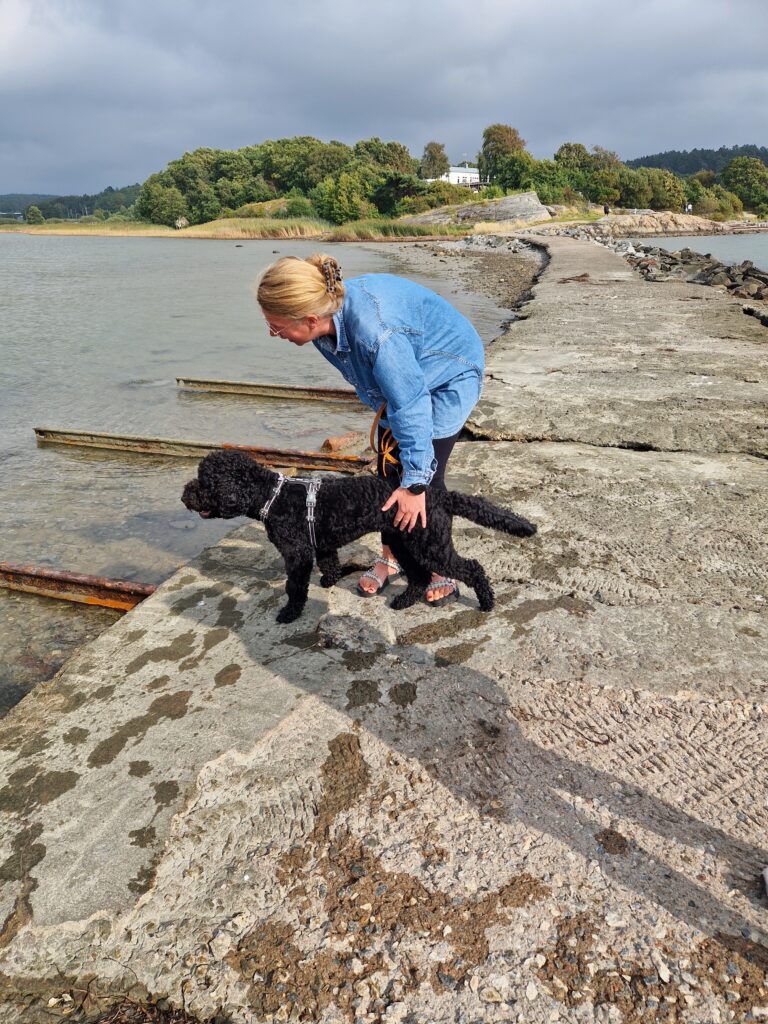 ” En av Kajsas fjolårsvalpar, Markes Ester Snygg, numera Esset med matte mötte oss när vi kom till Tjörn. En mkt kär återträff. Esset gör verkligen skäl för namnet Snygg. En toppentjej på alla sätt”