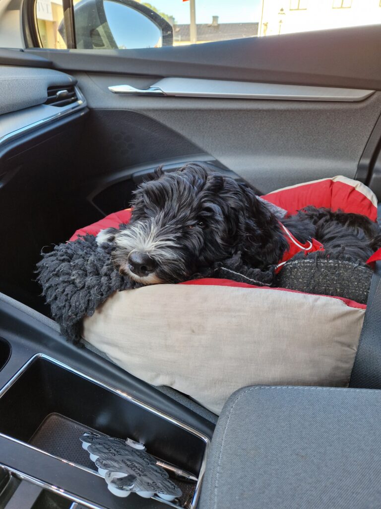 Markes Frieder, numera Sigge, testar framsätet, 1 sept 2025Av kerstin / oktober 22, 2025 ” Sigge testar framsätet inför sin färd till Solna och sin valpfamilj. Inga problem”