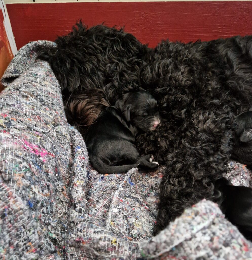 ” Markes Frauke, Lotta och Markes Frieder, Sigge har fått vacc II och finner sig väl tillrätta i skuffen”