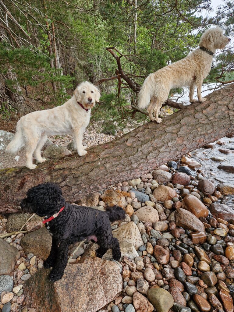 ” Valparna har anammat att man blir ”lyssnad” på om man sitter. Fr vä Frej, Frauke Frieder som får godis och Frodo”