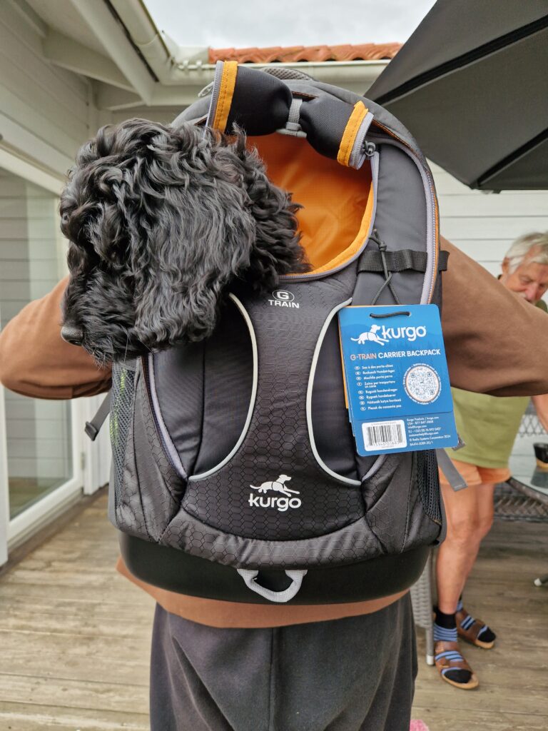 ” Svante testar nyinköpt ryggsäck. Bra för Svante men tungt för husse. Aug 2025″
